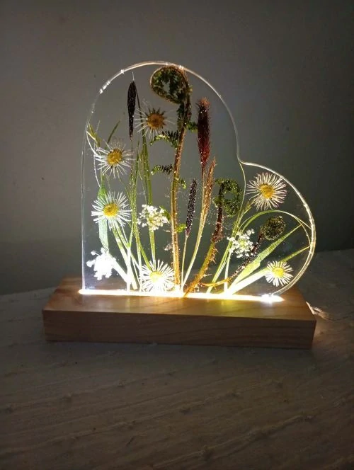 Květinová lampa z pryskyřice Láska v kapradí