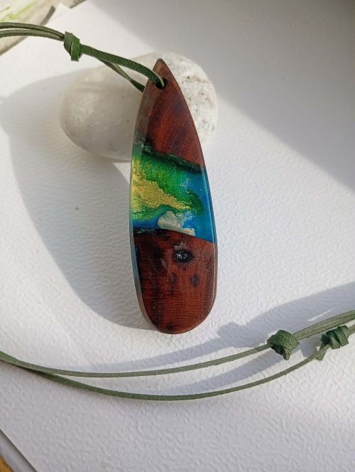 Náhrdelník je vytvořen z krásného švestkového dřeva ve tvaru kapky, s zajímavým hraním s barvami. .