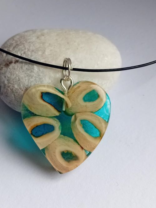Srdíčko jsem vytvořila z pistáciových skořápek a tyrkysové pryskyřice .